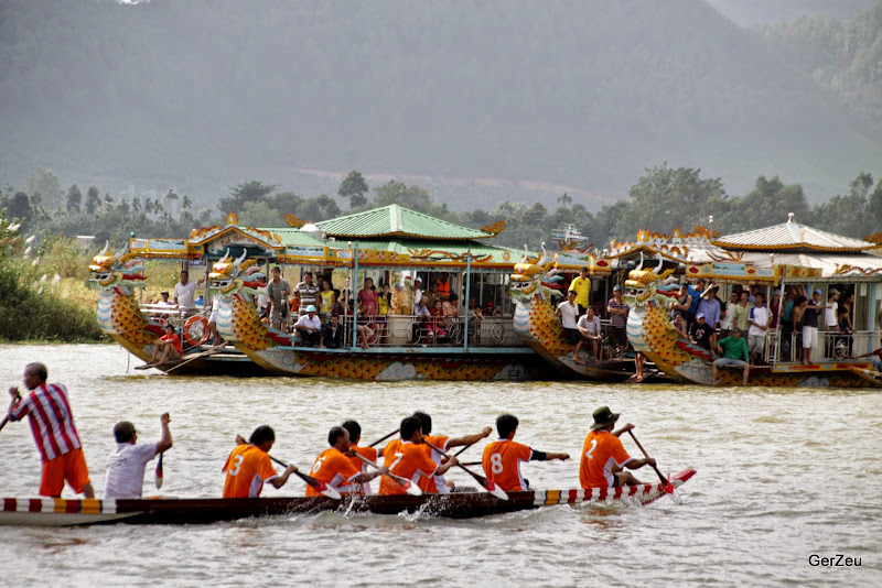 Die erste Sonne seit 2 1/2 Tagen, obwohl wetter.com und andere etwas anderes vorausgesagt hatten. Und sofort war die Temperatur auf 34° oben. Vormittag durch paar Dörfer westlich der Stadt geschwitzt.Dann hab ich noch das größte der Kaisergräber gefunden. Der Kaiser soll 30Jahre gebraucht haben, bis er sich für den Ort (heute am Stadtrand von Hue) entschieden hatte. Ich hätte ihm nach einer Stunde gesagt, dass der Hügel der beste ist. Spitzen Aussicht und man sieht von hier sogar die Zitadelle und im Osten das Meer.