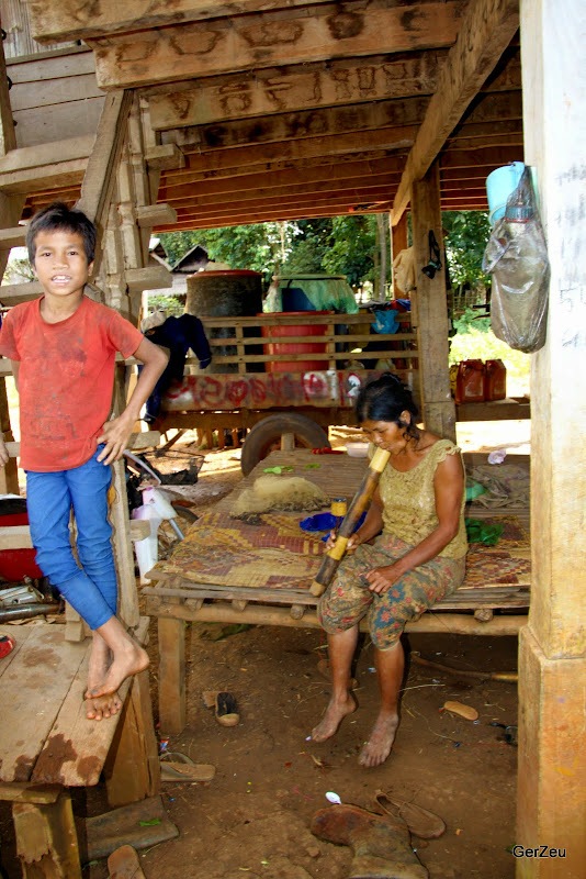 An einem der Fälle haben die Laoten 'für mich' ein ethnisches Museumsdorf aufgebaut, mit Eintritt und meinen gesuchten Menschen zum fotografieren. Menschen im Zoo.