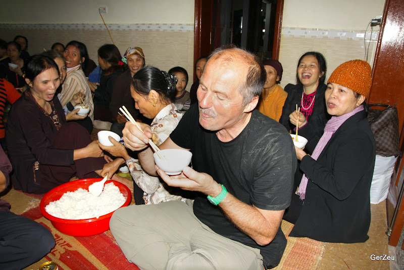 Abends bin ich noch zu einer buddhistischen Feier gekommen und wurde danach zu der ganzen Gemeinde zum Essen eingeladen.